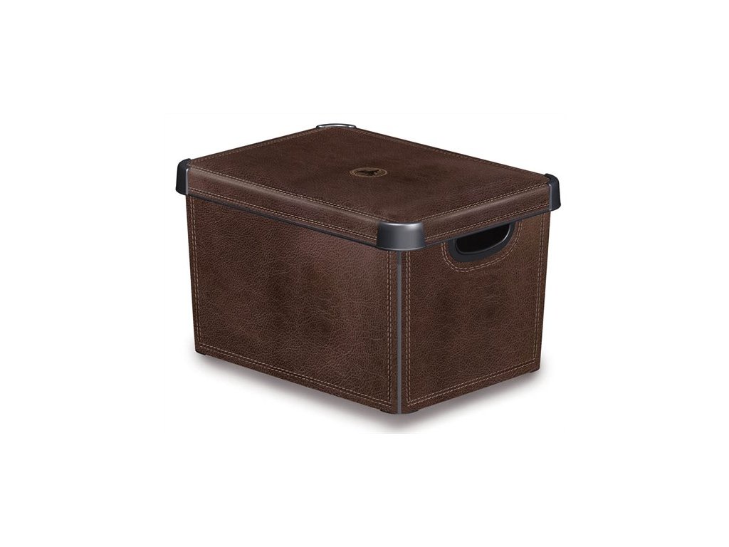 Odkladací box, s vekom, 22 l, efekt kože, CURVER " Deco L"