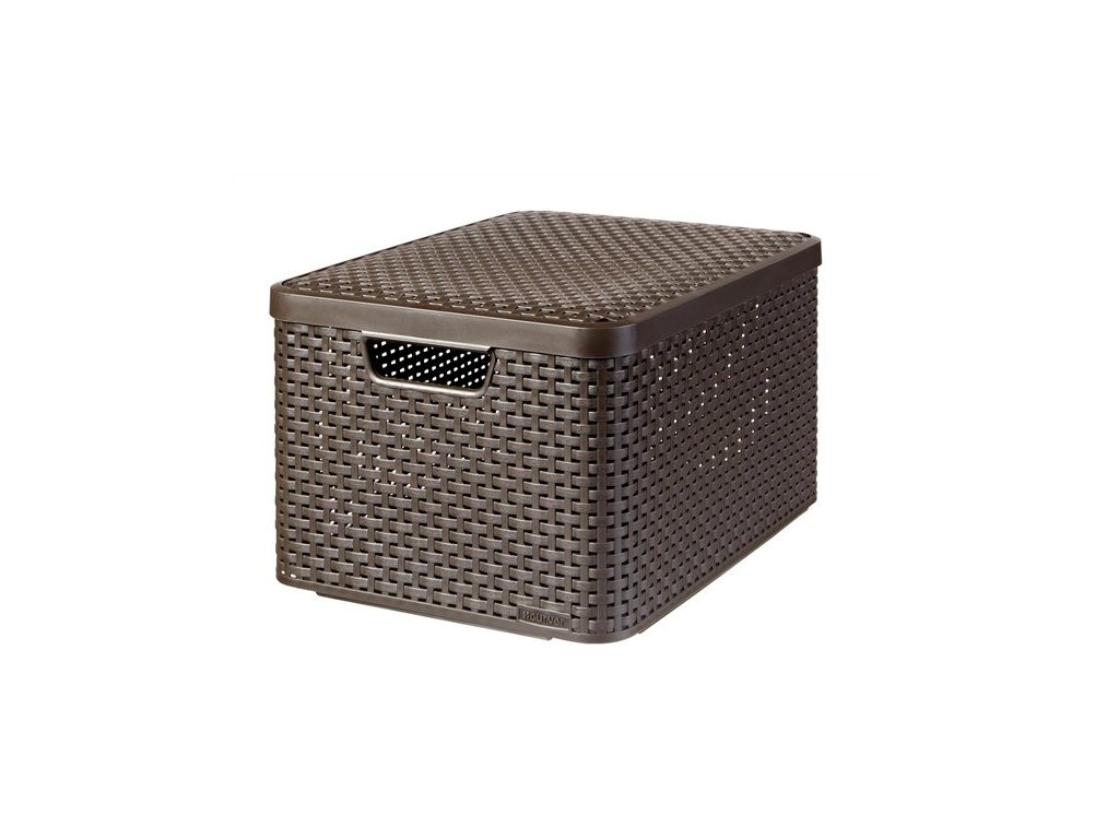 Odkladací box s vekom, s efektom rattanu, 30l, tmavohnedá, CURVER "Style L"