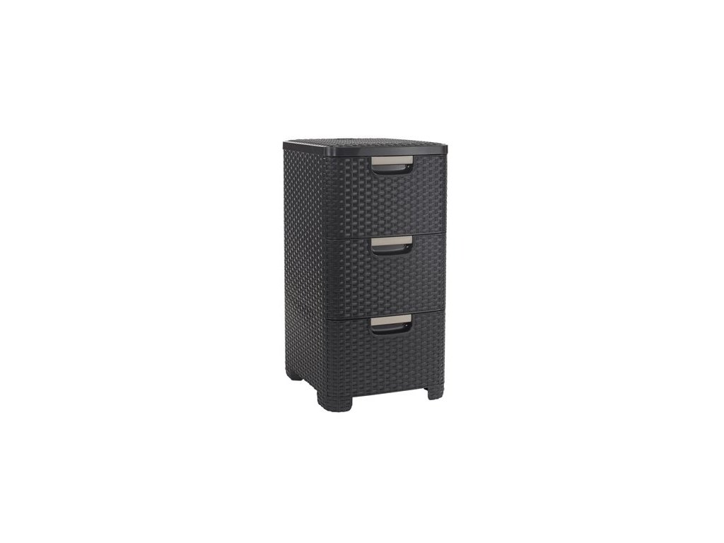 materiál: umelý ratan 3 zásuvky farba: tmavohnedá šírka: 32,5 cm hĺbka: 37,5 cm výška: 59,5 cmDodatočné parametre