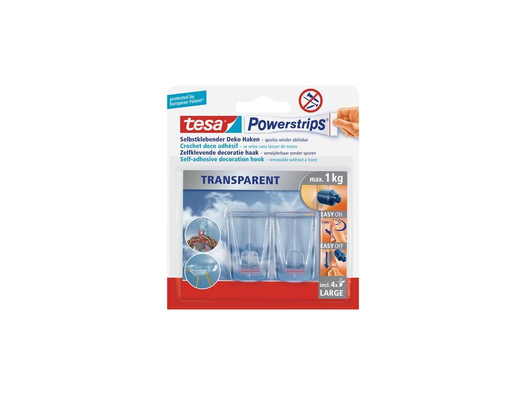 Odnímateľný nástenný háčik, TESA "Powerstrips®", priesvitný