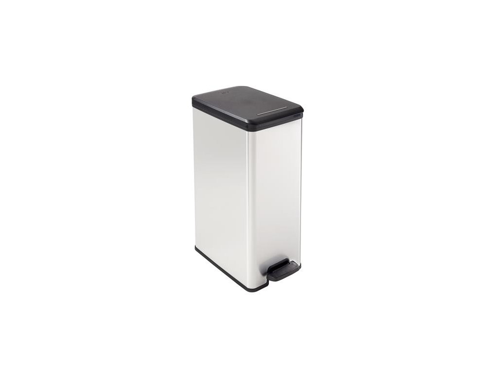 Odpadkový kôš od Curver, kovový vzhľad, ideálny do kuchyne, kancelárie alebo spálne. Odpadkový kôš Curver má veľkú kapacitu 40 l a má povrchovú úpravu s kovovým efektom, no je vyrobený z plastu, takže sa nemusíte báť stôp či škrabancov, hrdze či odtlačkov prstov. Tento odpadkový kôš sa ľahko používa, pretože sa otvára alebo zatvára pomocou širokého, praktického pedálu , ktorý ovládate nohou, pričom vaše ruky zostávajú čisté. Odpadkový kôš sa tiež ľahko vyprázdňuje, pretože vo vnútri je vybavený upevňovacím systémom pre vrece na odpadky. Rozmery 25 x 42 x 61 cm.Dodatočné parametre