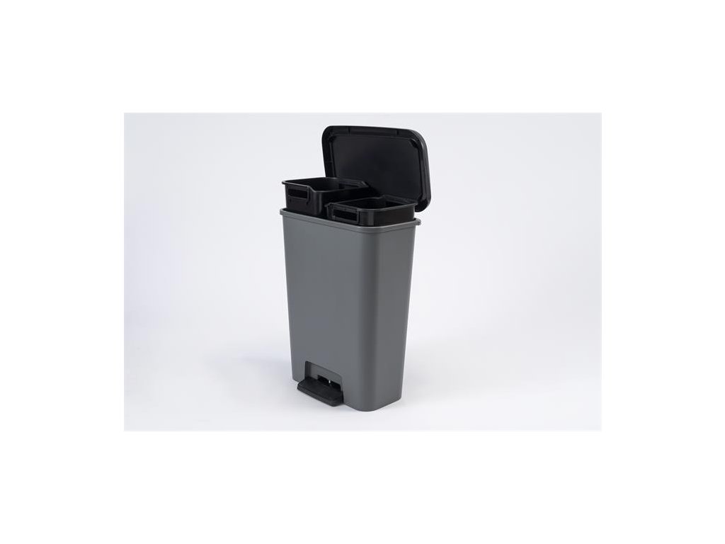 Odpadkový kôš, pedálový, hranatý, 2x23 l, CURVER "Compatta Duo", tmavosivá