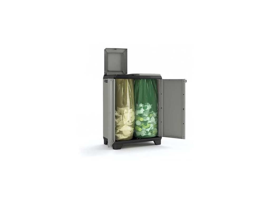 KETER Planet štýlovo a jednoducho prispieva k ochrane životného prostredia.Jeho moderný dizajn sa hodí do každého priestoru. -vhodná na uloženie dvoch vriec s objemom do 110 litrov -vyrobený z 80% recyklovaného plastu -ľahko sa čistí - jednoduchá montáž -vybavená dvoma hornými vekami so špeciálne tvarovanými otvormi pre jednoduché otváranie - predné dvojkrídlové dvierka s pohodlnými úchytkami - s nastaviteľnými nohami -rozmery: 39x68 x92 cm (šírka x hĺbka x výška) -hmotnosť: 5,96 kg - vrecia nie sú súčasťou baleniaDodatočné parametre