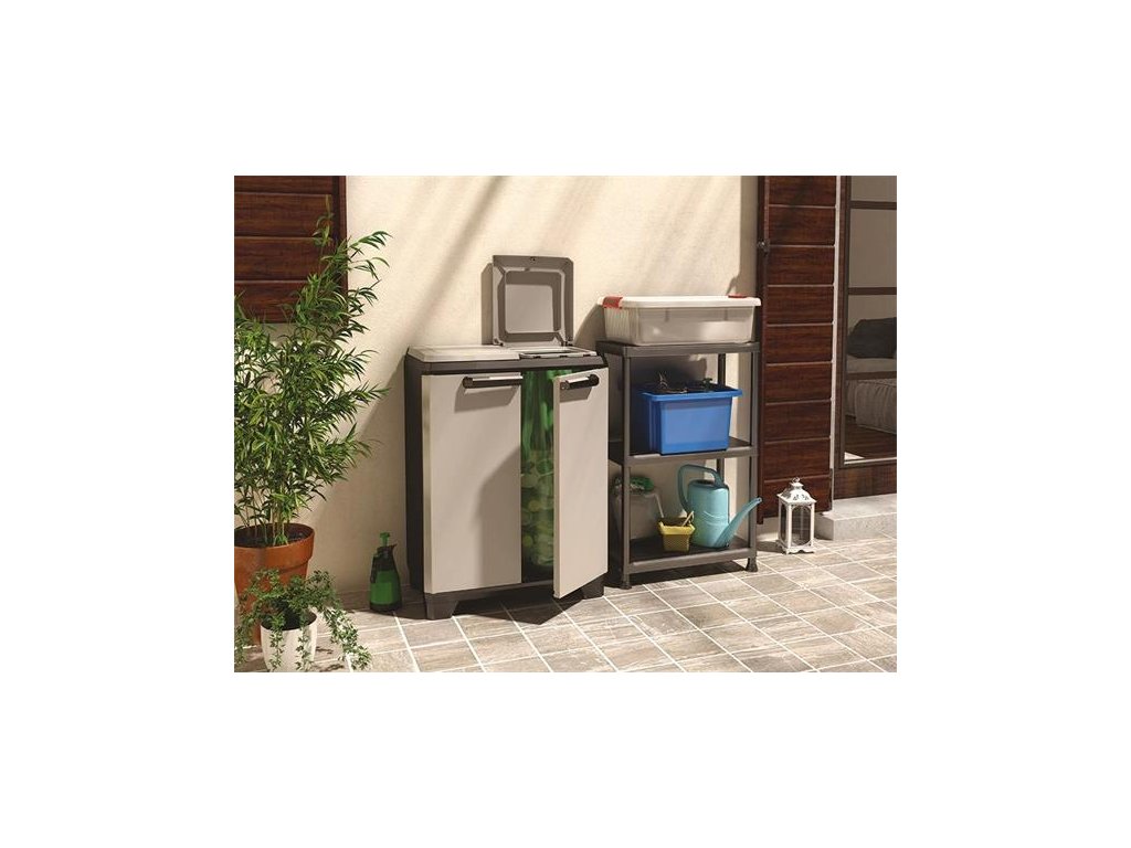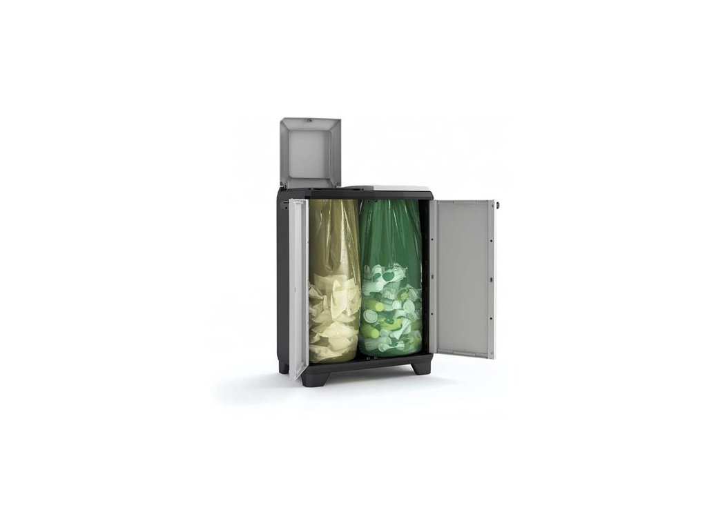 KETER Split Premium odpadkový kôš/skrinka na triedený odpad vďaka praktickému dizajnu a modernému tmavosivému/čiernemu vzhľadu štýlovo a jednoducho prispieva k ochrane životného prostredia. -vhodná na uloženie dvoch vriec s objemom do 110 litrov -vyrobená z polypropylénu, odolná voči mechanickému poškodeniu a poveternostným vplyvom, takže ju možno umiestniť v interiéri aj exteriéri, napríklad na krytej terase -ľahko sa čistí - jednoduchá montáž -vybavená dvoma hornými vekami so špeciálne tvarovanými otvormi pre jednoduché otváranie - predné dvojkrídlové dvierka s pohodlnými úchytkami - s nastaviteľnými nohami -rozmery: 39x68 x92 cm (šírka x hĺbka x výška) -hmotnosť: 5,74 kg - vrecia nie sú súčasťou baleniaDodatočné parametre