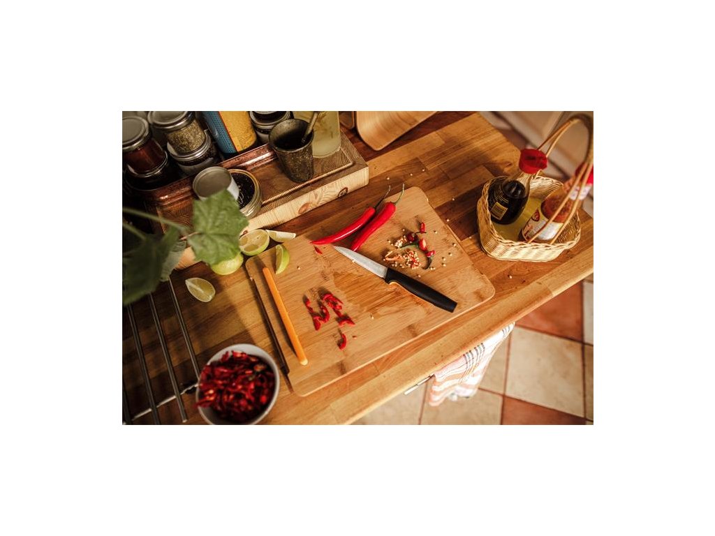 Spoľahlivý výkon Vysoko kvalitná japonská nerezová oceľ zaisťuje skvelú ostrosť a korozivzdornosť. Odolné prevedenie Zosilnená čepeľ pre dobré vyváženie noža a jeho pevnosť. Dodatočne leštené ostrie zvyšuje výkon čepele. Možno umývať v umývačke riadu. Hygienický a pohodlný materiál rukoväte Bezpečné a nekĺzavé uchopenie vďaka materiálu Softouch ™ Hlboké zahĺbenie rukoväte zvyšuje ochranu prsta Ergonomicky tvarovaná rukoväť umožnuje rôzne spôsoby uchopenia Okrajovací nôž 11cm Viacúčelový okrajovací nôž, ideálny pre krájanie ovocia a zeleninyDodatočné parametre