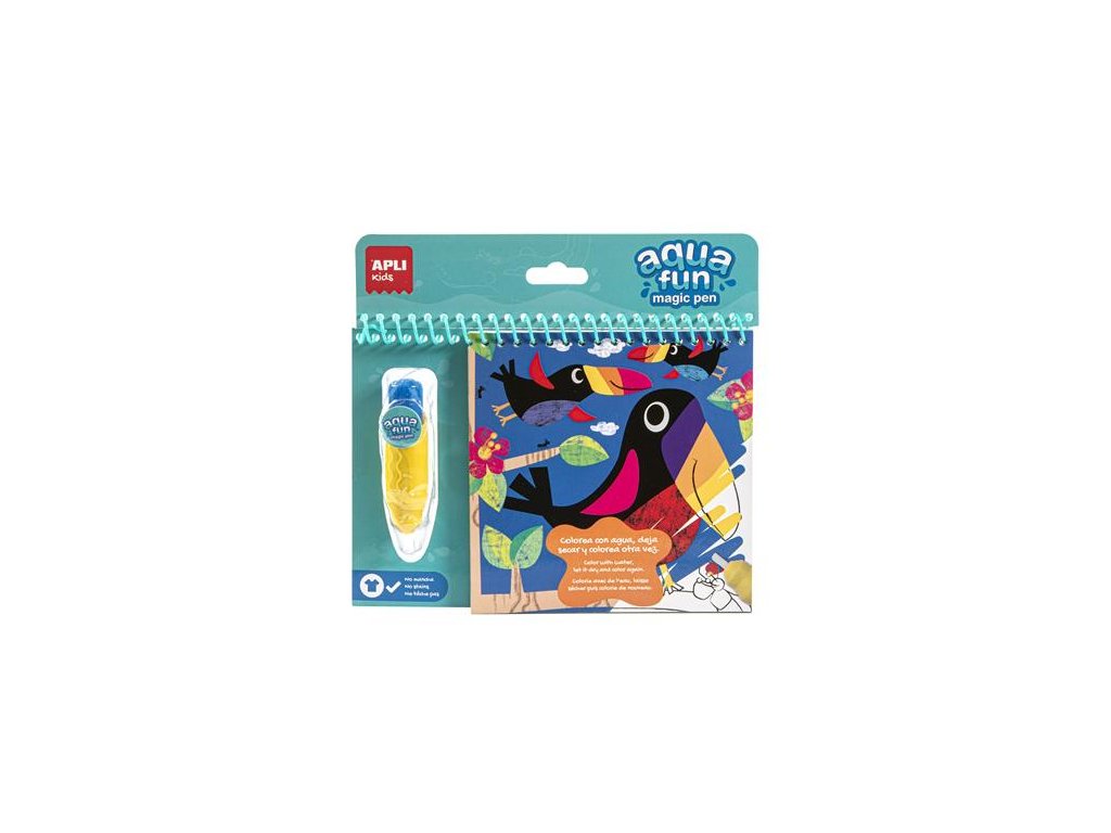 APLI Kids: farbite silou vody! Omaľovánka na vyfarbenie vodou, so zvieratkami z džungle. magické pero: stačí naplniť pero vodou, vyfarbiť strany a farby sa objavia na výkrese obsahuje 6 ks čierno-bielych kresieb, ktoré sa po vystavení vode sfarbia a po zaschnutí opäť čiernobiele, takže sa dá použiť viackrát rozvíja jemnú motoriku, podporuje písanie a koncentráciu odporúčaný vek dieťaťa: od 3 rokov Bezpečnostné upozornenia: Môže obsahovať malé časti. Nebezpečenstvo udusenia. Môže sa používať pod dohľadom dospelej osoby.Dodatočné parametre
