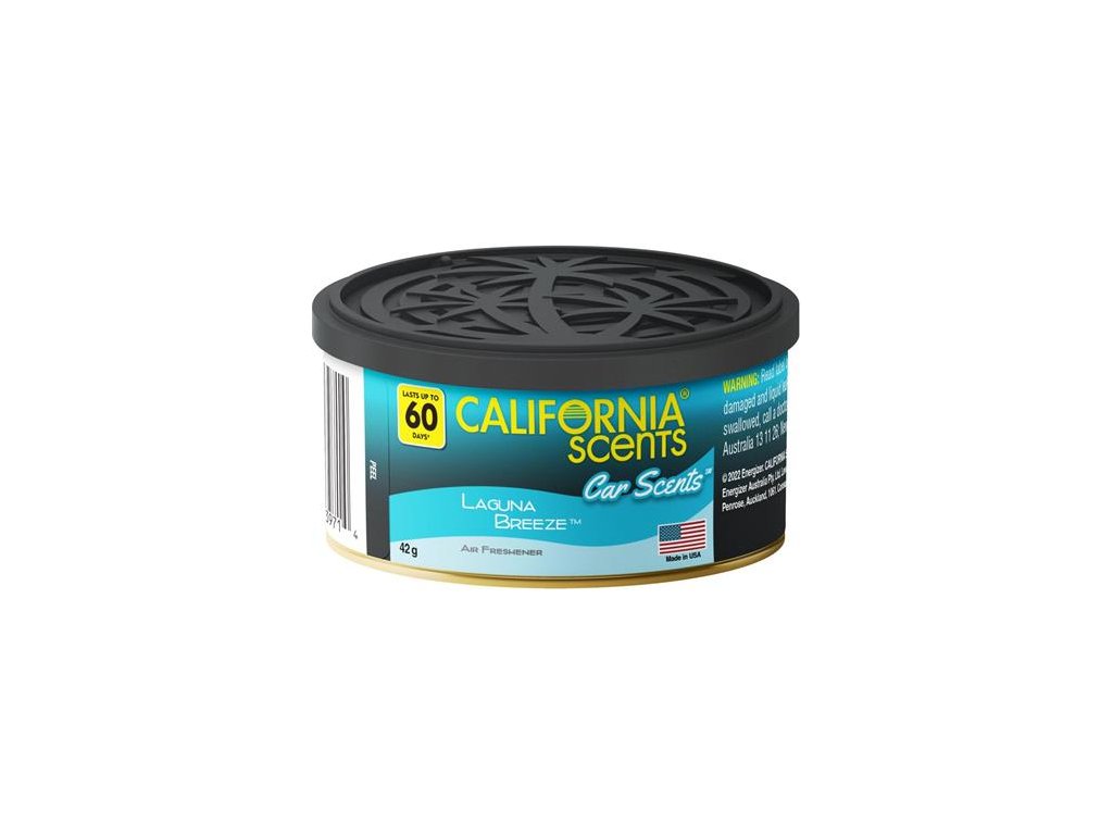 CALIFORNIA CAR SCENTS - LAGUNA BREEZE - plechovka s vôňou Vánok lagúny rozvonia interiér auta až na 60 dní. Produkt je absolútne bezpečný, nehrozí žiadny únik kvapaliny ani žiadne poškodenie plastových alebo iných dielov interiéru auta. Dodávané plastové viečko plechovky má integrovaný regulátor intenzity vône. Je biologicky odbúrateľný a ekologický. Značka: CALIFORNIA SCENTS Výrobca: Energizer France SAS Adresa: 2 rue Jacques Daguerre, 92500 Rueil-Malmaison, France Web: www.CaliforniaScents.com Email: customerSupport@energizer.comDodatočné parametre
