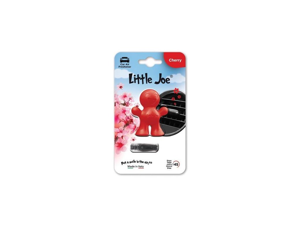 Little Joe je veselá 3D figúrka s prirodzenou a jemnou vôňou.Vôňa je sladká a omamná aróma, ktorá zachytáva esenciu čerstvo nazbieraných zrelých čerešní. Spája šťavnaté tóny čerešní, kvetinové akordy a jemnú vanilkovú arómu, čím vytvára príjemnú a zvodnú vôňu. Táto vôňa vzbudzuje pocit nostalgie, tepla a pôžitku, a je ideálna pre všetkých, ktorí milujú sladkú a ovocnú arómu čerešní.vydrží voňať až 45 dní -jednoduchá inštalácia: pripevňuje sa na mriežku ventilácie