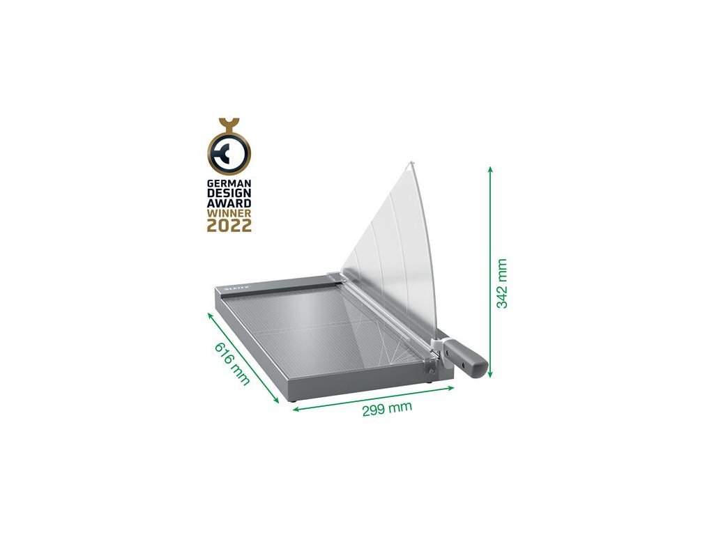 presná kancelárska rezačka LEITZ Office Pro A3 je ideálna na bežné kancelárske použitie na rezanie papiera, štítkov, fólií, fotografií, laminátov, kariet a lepenky. kvalitný nôž z nerezovej ocele rozreže až 25 hárkov papiera s gramážou 80 g/m2 priehľadná ručná svorka drží papier bezpečne na správnom mieste ergonomická rukoväť zaručuje jednoduché a presné výsledky pri každom použití hladký povrch laminátovej podložky s jednoduchými metrickými mriežkami, uhlovými vodidlami a presnými meracími linkami na jednoduché zarovnanie papiera bezpečnostný kryt čepele poskytuje úplnú ochranu, zatiaľ čo bezpečnostná západka udržuje čepeľ zatvorenú, keď sa nepoužíva robustná plastová základňa s protišmykovými gumovými nožičkami pre bezpečnosť a stabilitu unikátne svetlo EdgeGlow osvetľuje čepeľ pre lepšiu viditeľnosť rezu a maximálnu presnosť kapacita: 25 listov (80 g/m2) Značka: LEITZ Výrobca: Esselte Kft. Adresa: 1139 Budapest, Lomb u. 37-39. A ép. II. 8., Hungary Web: https://www.accobrands.com/brands/ Email: hungarymarketing@acco.comDodatočné parametre