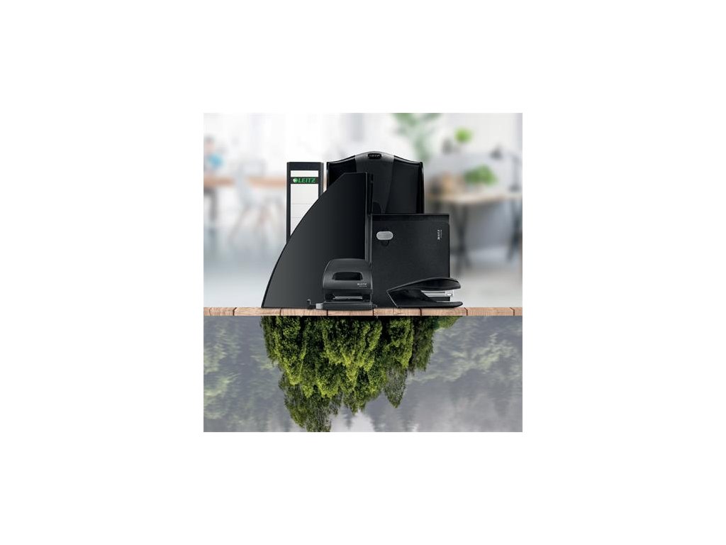 Atraktívny, pákový šanón na dokumenty prémiovej kvality vyrobený z recyklovaných materiálov, ktoré možno rozobrať na úplnú recykláciu - Vyrobené zo 100% recyklovaného kartónu - 100% recyklovateľný, klimaticky neutrálny produkt s certifikátmi Blue Angel a FSC - patentom chránená 180° štruktúra páky, ktorá sa otvára o 50% širšie a výsledkom je až o 20% rýchlejšia organizácia - pevný, papierom potiahnutý šanón na dokumenty v štýlovej čiernej farbe - svetlosivý, vyťahovací otvor z recyklovaného plastu pre jednoduché použitie a rado krúžky - pre stabilitu - kapacita 350 listov A4 (80 g). - 5-ročná záruka na konštrukciu - Produkt vyrobený v Európe Značka: LEITZ Výrobca: Esselte Kft. Adresa: 1139 Budapest, Lomb u. 37-39. A ép. II. 8., Hungary Web: https://www.accobrands.com/brands/ Email: hungarymarketing@acco.comDodatočné parametre