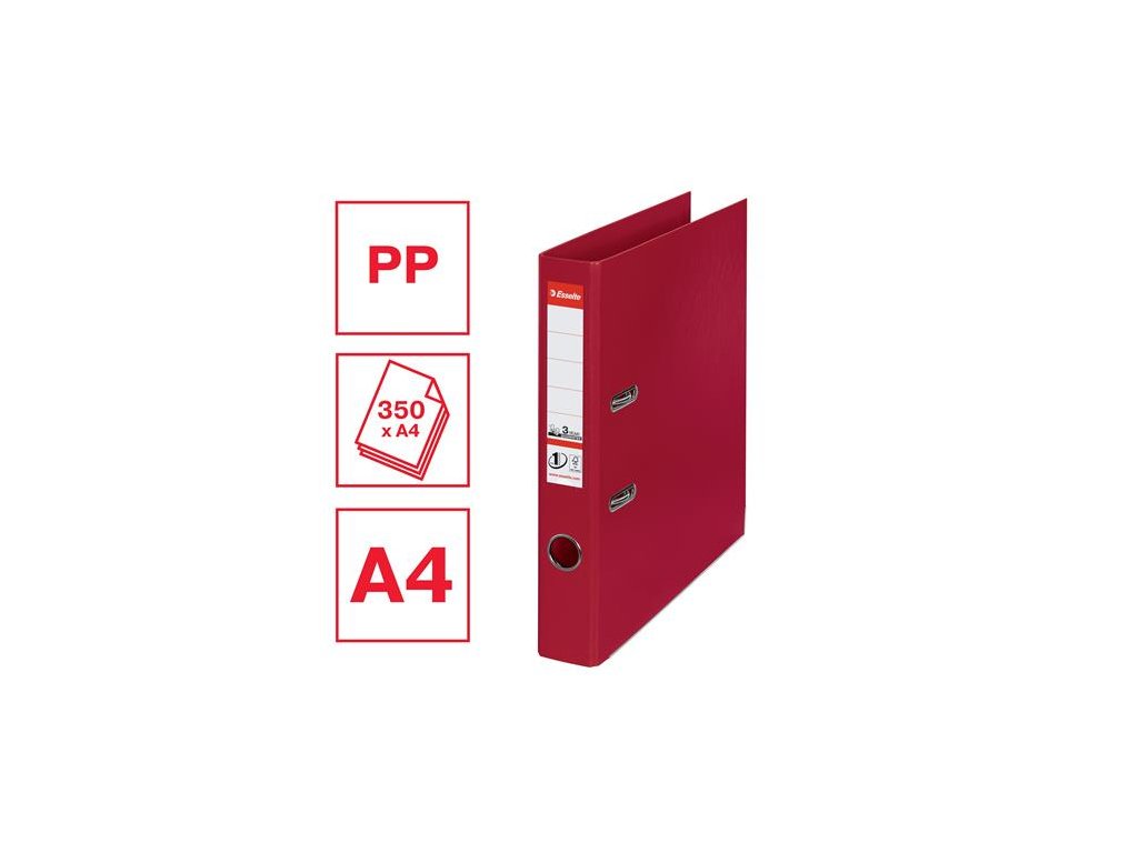 Pákový šanón, 50 mm, A4, PP/PP, s ochranným spodným kovaním, ESSELTE "Standard", bordový
