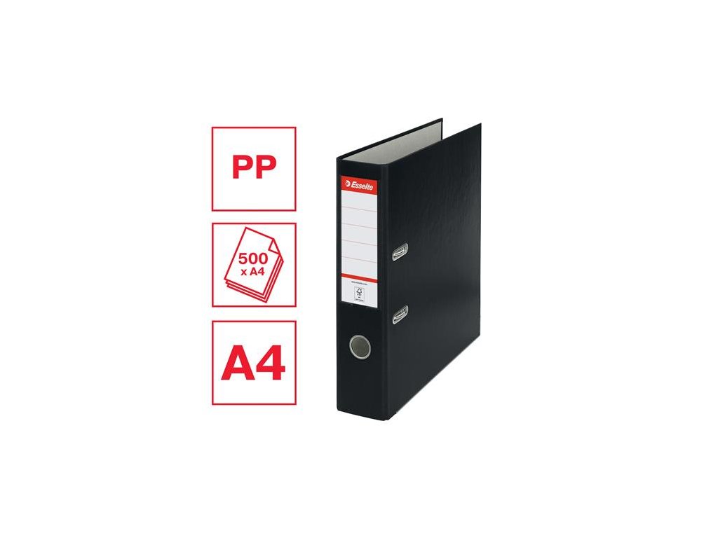 Pákový šanón, 75 mm, A4, PP/kartón, ochranné spodné kovanie, ESSELTE "Economy", čierny