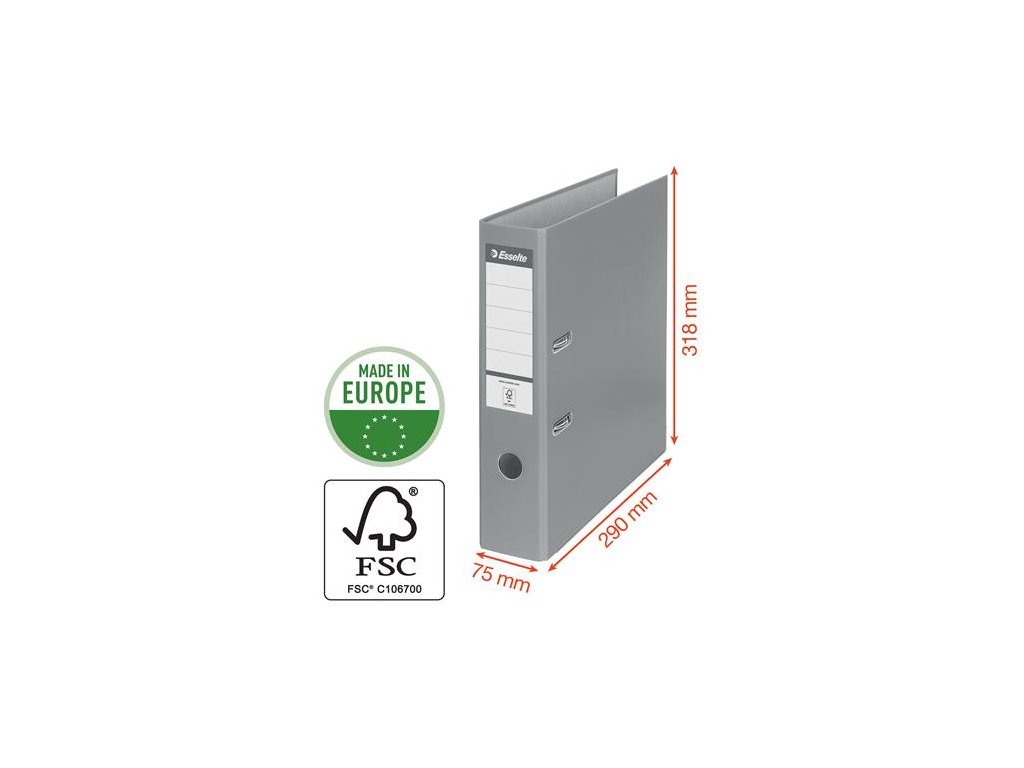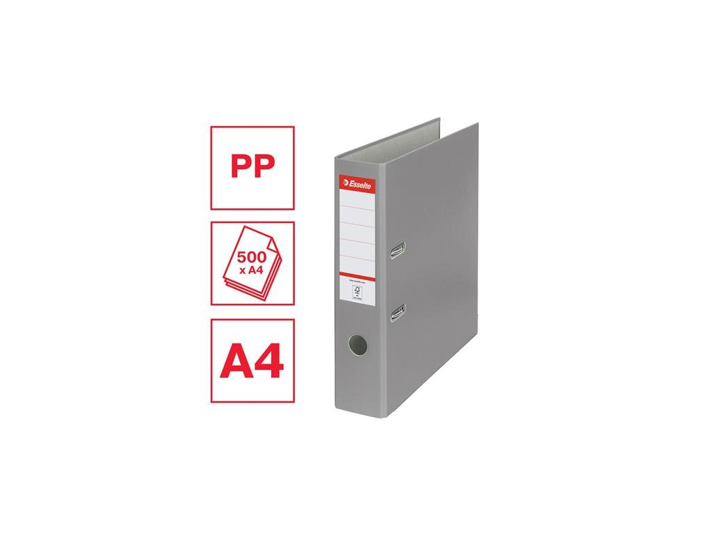 Pákový šanón, 75 mm, A4, PP/kartón, ochranné spodné kovanie, ESSELTE "Economy", sivý