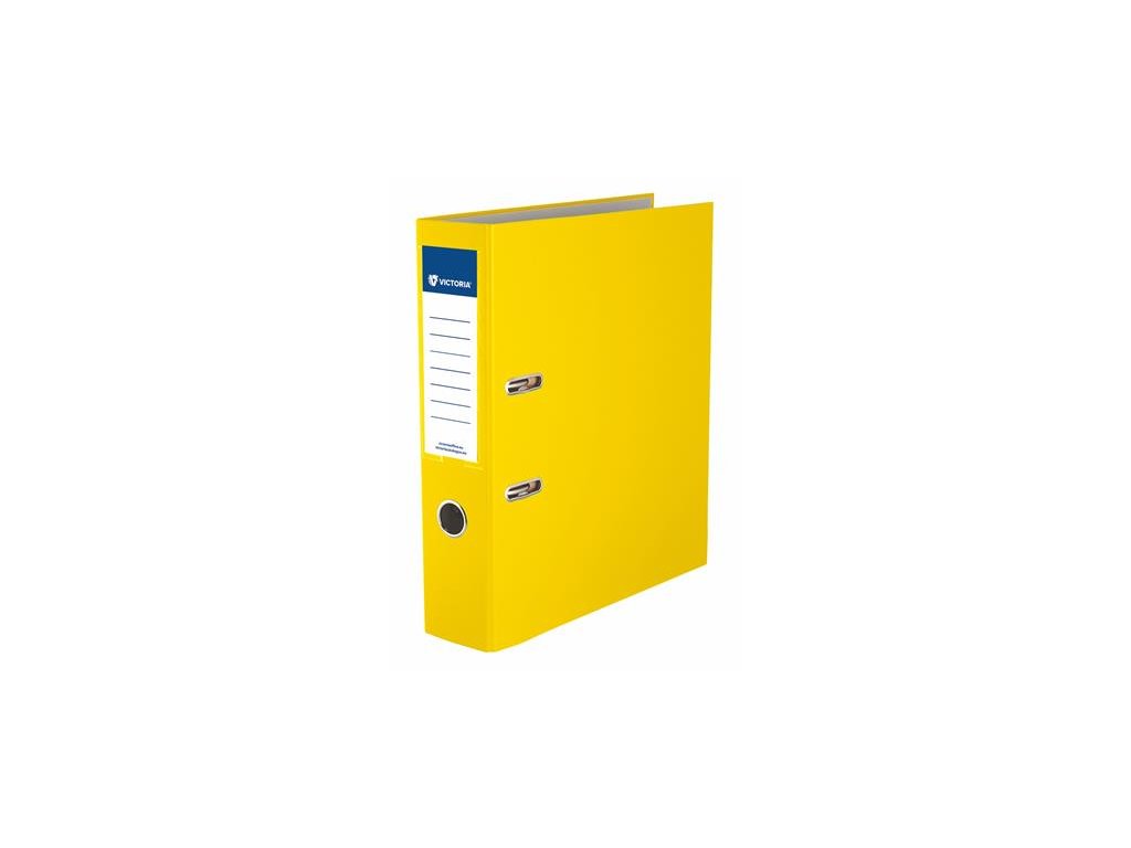 Pákový šanón, 75 mm, A4, PP/kartón, s ochranným spodným kovaním, VICTORIA OFFICE "Basic, žltý