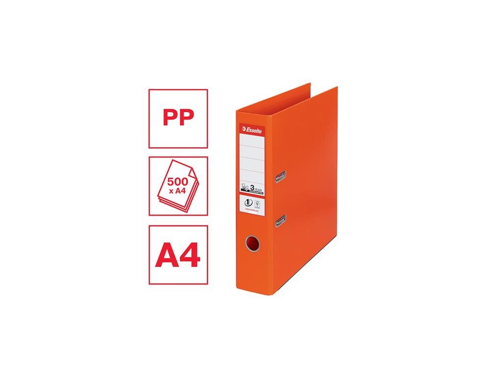 Pákový šanón, 75 mm, A4, PP/PP, s ochranným spodným kovaním, ESSELTE "Standard", oranžový