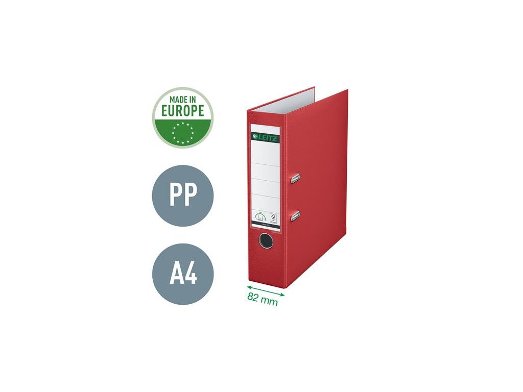 Pákový šanón, 80 mm, A4, PP/kartón, ochranné spodné kovanie, LEITZ "180", červený