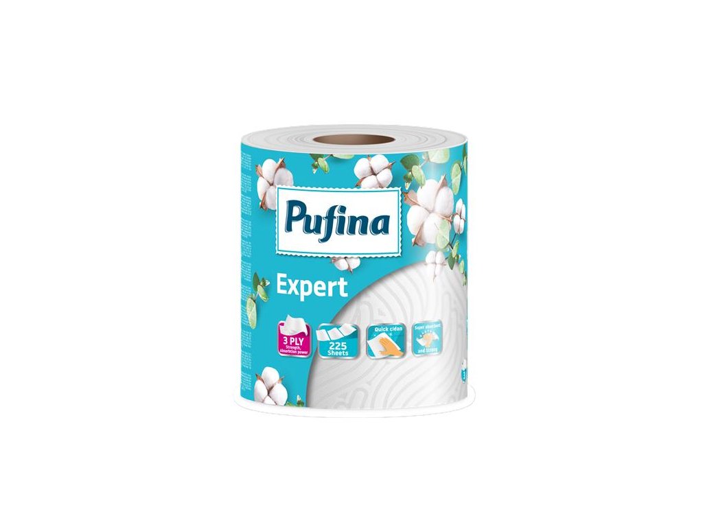 Papierové utierky, 3-vrstvové, 225 listov, 1 kotúč, PUFINA "Expert"