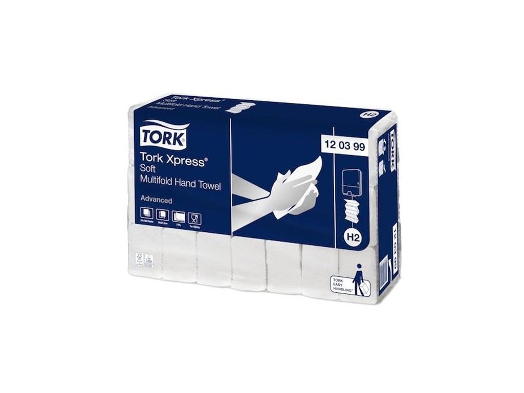 Papierové utierky, Interfold, 2-vrstvové, 136 útržkov, H2 systém, Advanced, TORK "Xpress Soft Multifold", biela