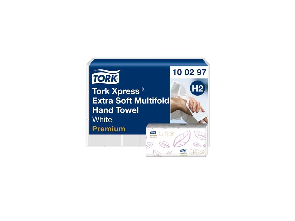 Papierové utierky, Interfold ohyb, H2 systém, Premium, TORK "Xpress® Multifold", biela