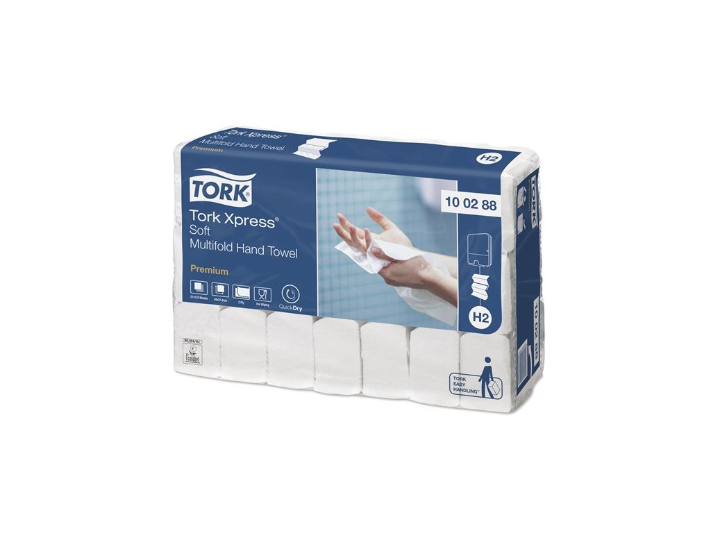 Papierové utierky, Interfold sklad, 2-vrstvové, H2 systém, Premium, TORK "Xpress® Soft Multifold", biela