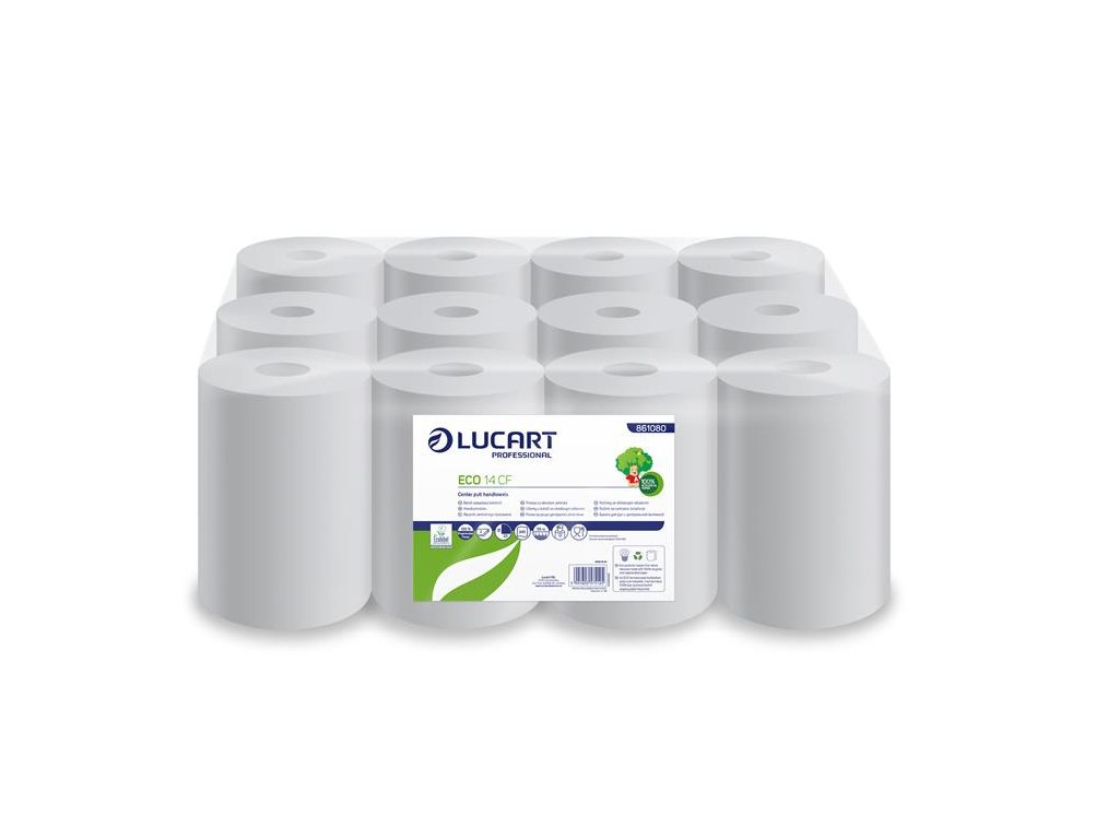 Papierové utierky, kotúčové, 2-vrstvové, LUCART "Eco CF 14", biela