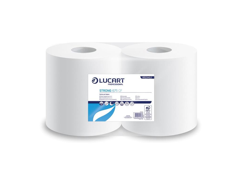 Papierové utierky, kotúčové, vnútorné dávkovanie, 2-vrstvové, LUCART "Strong 675 CF", biela