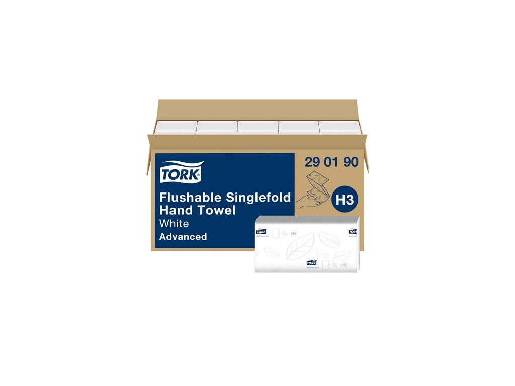 Papierové utierky, Z ohyb, 2-vrstvové, H3 systém, Advanced, TORK "Singlefold", biela