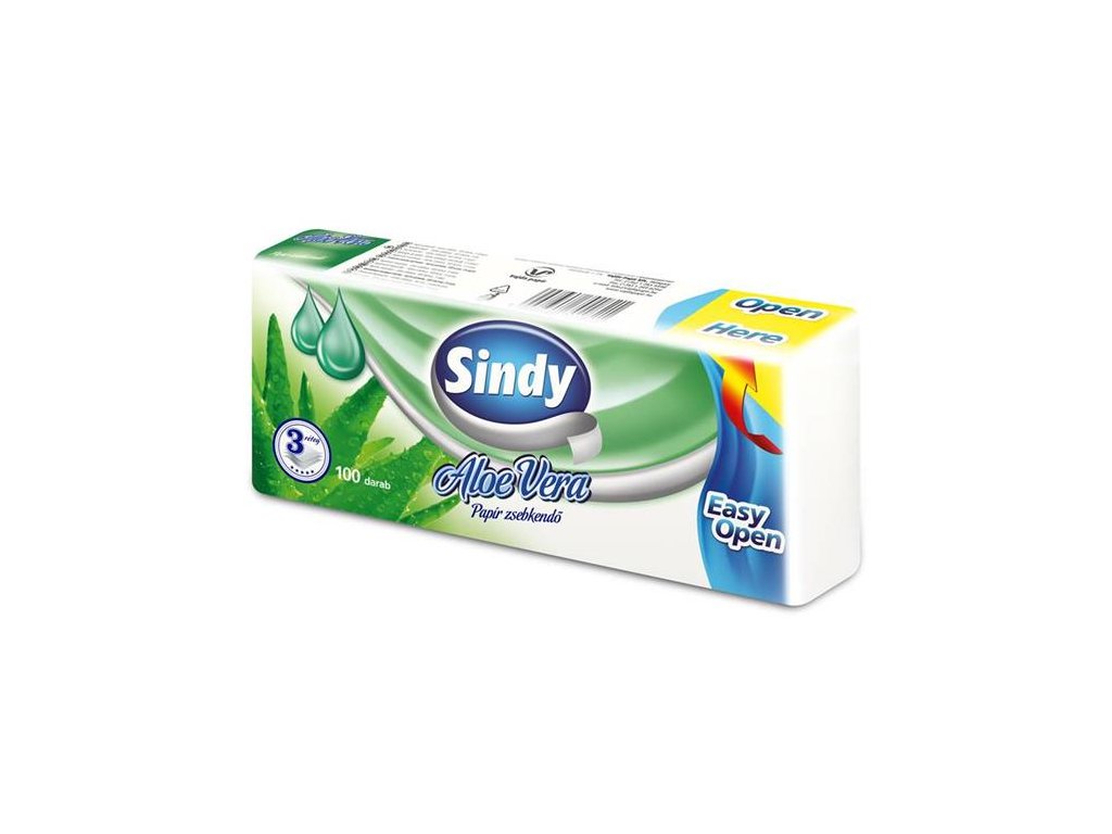 Papierové vreckovky, 3-vrstvové, 100 ks balenie, "Sindy", aloe vera