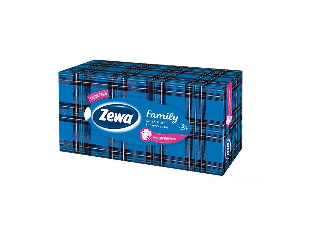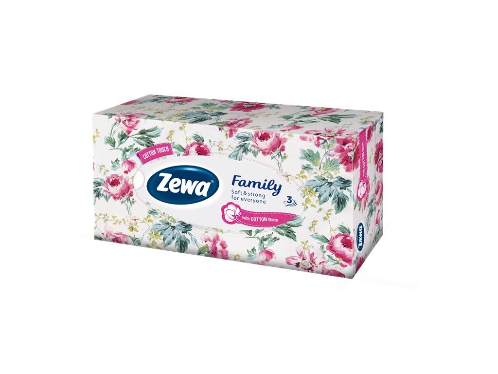 Papierové vreckovky, 3-vrstvové, 90 ks, ZEWA "Family", bez vône