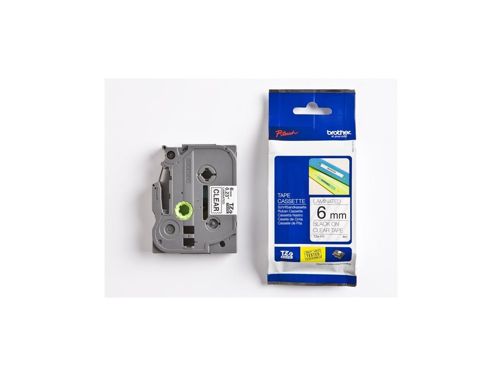 Páska do štítkovača, 6 mm x 8 m, BROTHER, "TZe-111" priehľadná-čierna