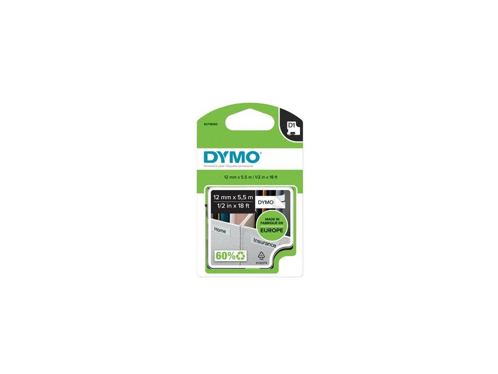 Páska do štítkovača, odolný polyester, 12 mm x 5,5 m, DYMO "D1", biela-čierna