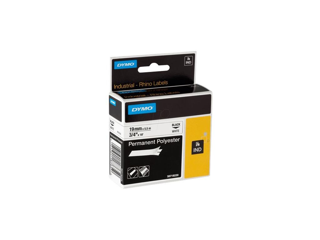 Páska do štítkovača, odolný polyester, 19 mm x 5,5 m, DYMO "Rhino", biela-čierna