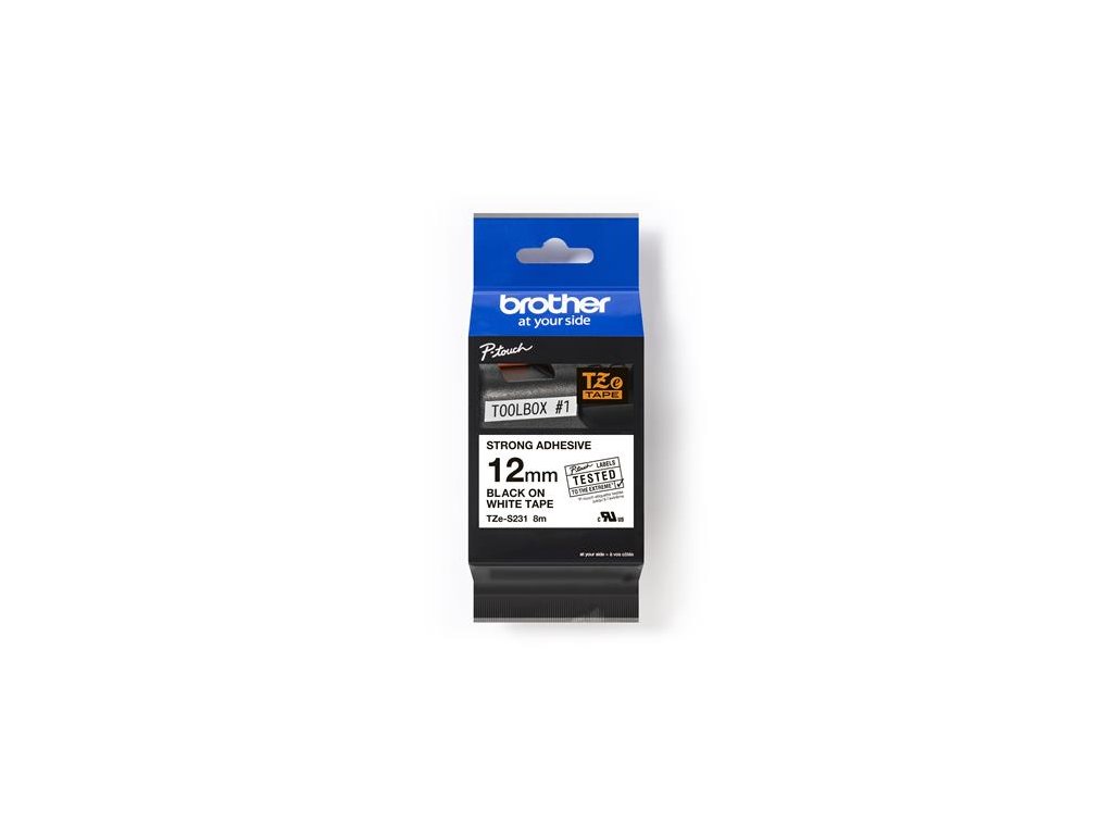 Páska do štítkovača, silné lepenie, 12 mm x 8 m, BROTHER, biela-čierna