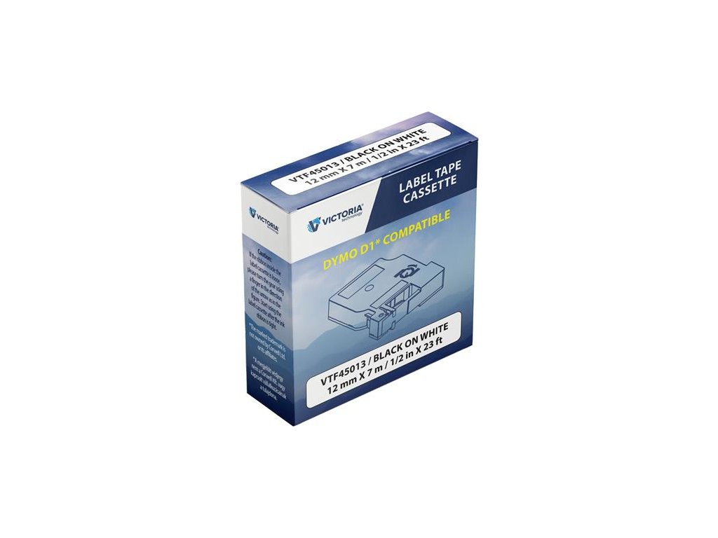 Páska do štítkovača 12 mm x 7 m, kompatibilita: DYMO D1, VICTORIA TECHNOLOGY, biela-čierna