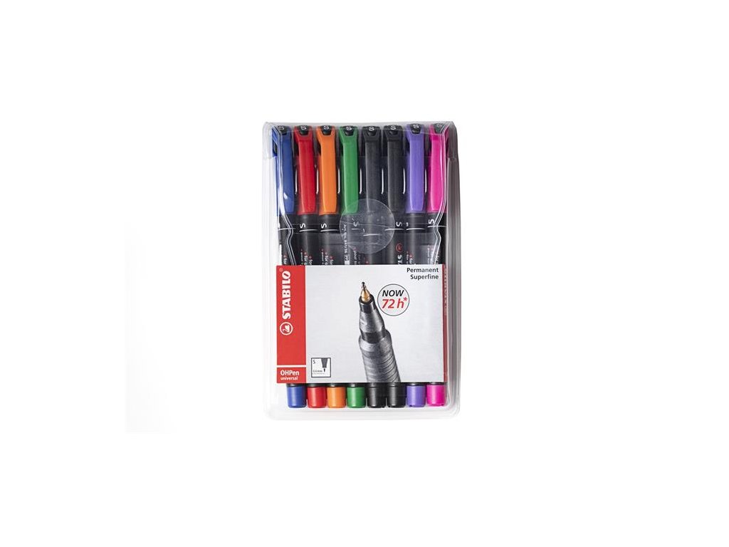Permanentný popisovač, 0, 4 mm, STABILO "OHPen S", 8 rôznych farieb