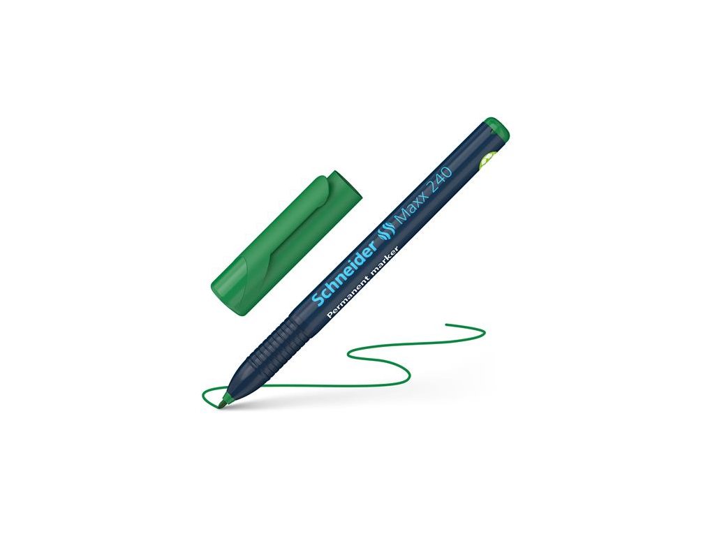 Permanentný popisovač, 1- 2 mm, kužeľový hrot, SCHNEIDER "240", zelený