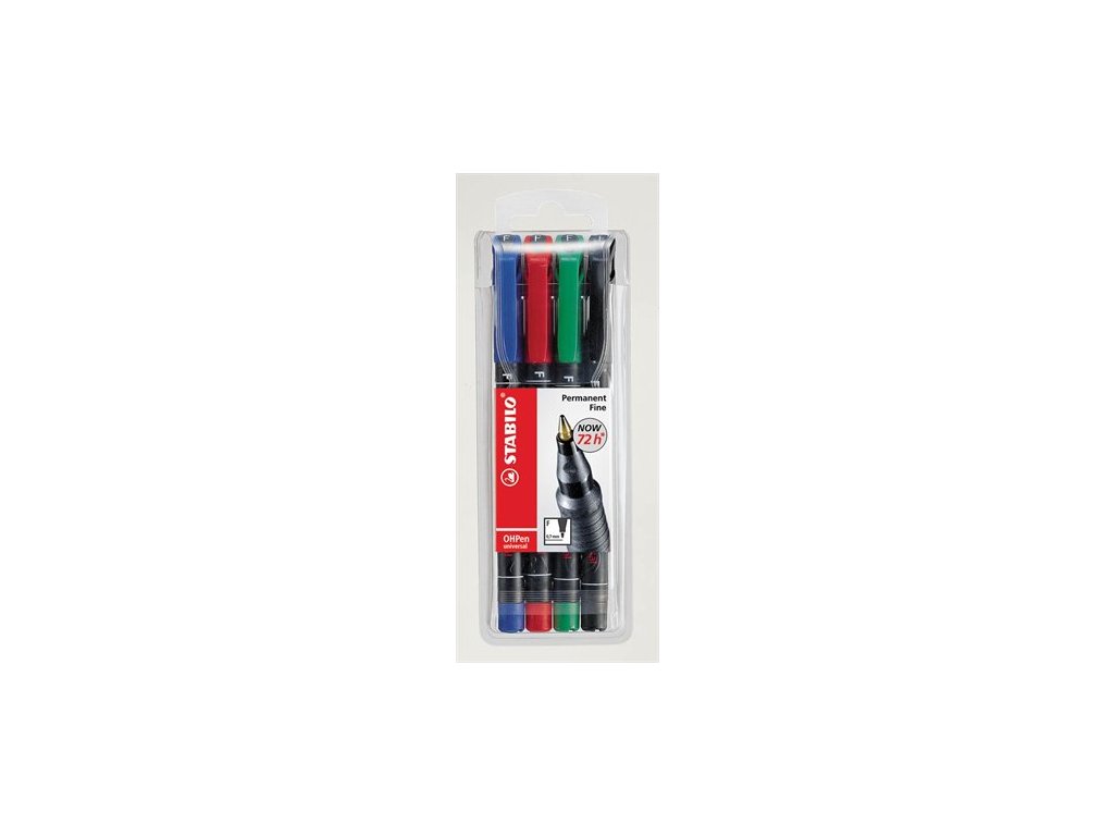Permanentný popisovač, sada, 0,7 mm, STABILO "OHPen F", 4 rôzne farby