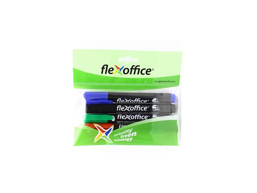 Permanentný popisovač, sada, 1,5 mm, kužeľový, FLEXOFFICE "PM03", 4 rôzne farby