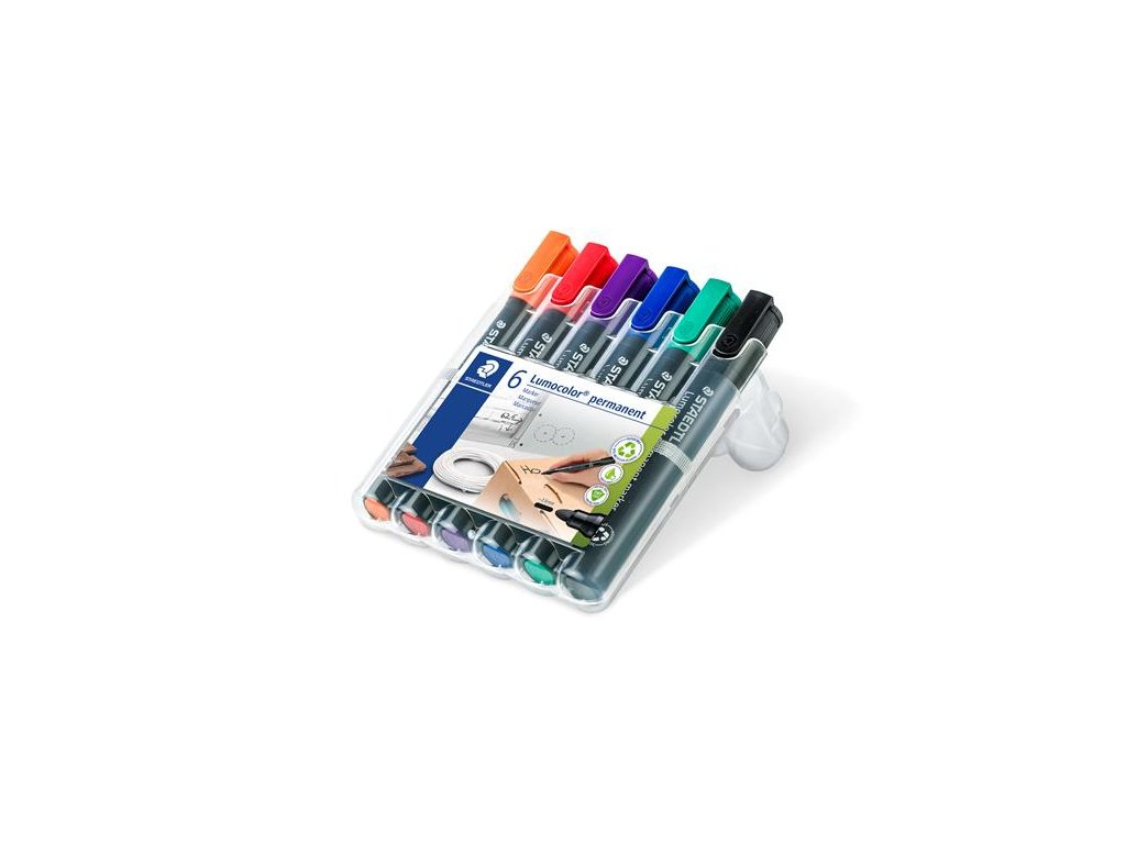 Permanentný popisovač, sada, 2 mm, kužeľový hrot, STAEDTLER "Lumocolor® 352", 6 rôznych farieb