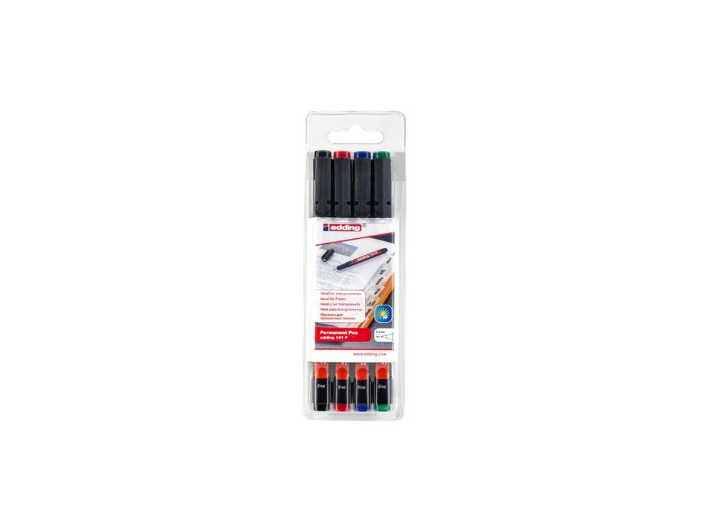 Permanentný popisovač, sada, OHP, 0,6 mm, EDDING "141 F", 4 rôzne farby