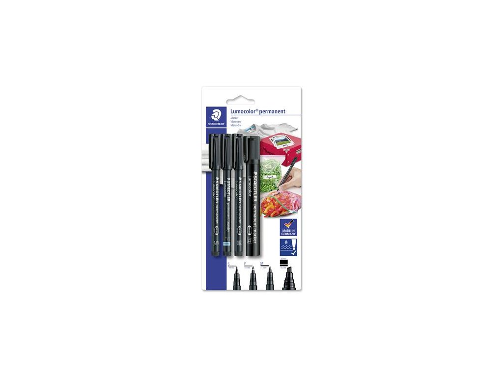 Permanentný popisovač, sada, STAEDTLER "Lumocolor 60" 4 rôzne hrúbky, čierna
