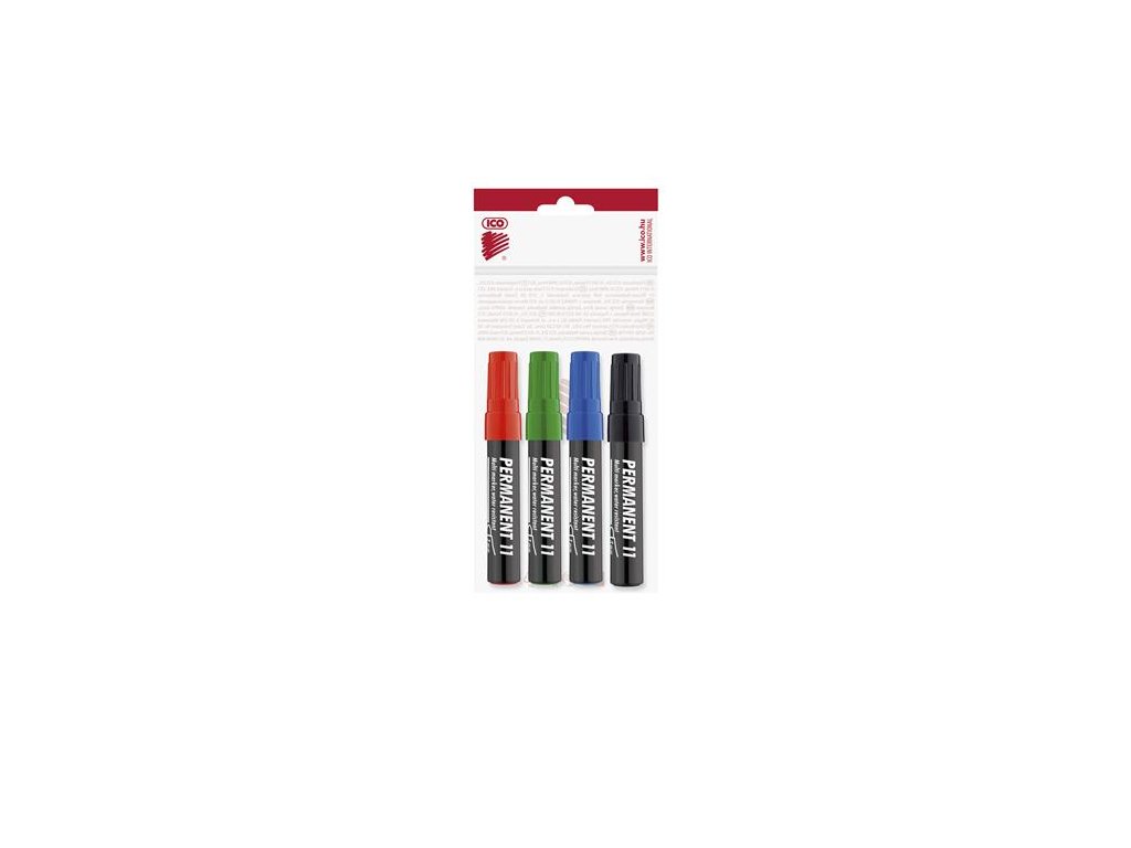 Permanentný popisovač, sada, 1-3 mm, kužeľový hrot, ICO "Permanent 11", 4 rôzne farby