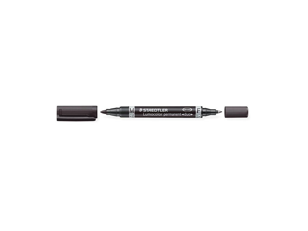 Permanentný popsiovač, F/M, 0,6/1,5 mm, kužeľový hrot, s 2 hrotmi, STAEDTLER "Lumocolor Duo", čierny