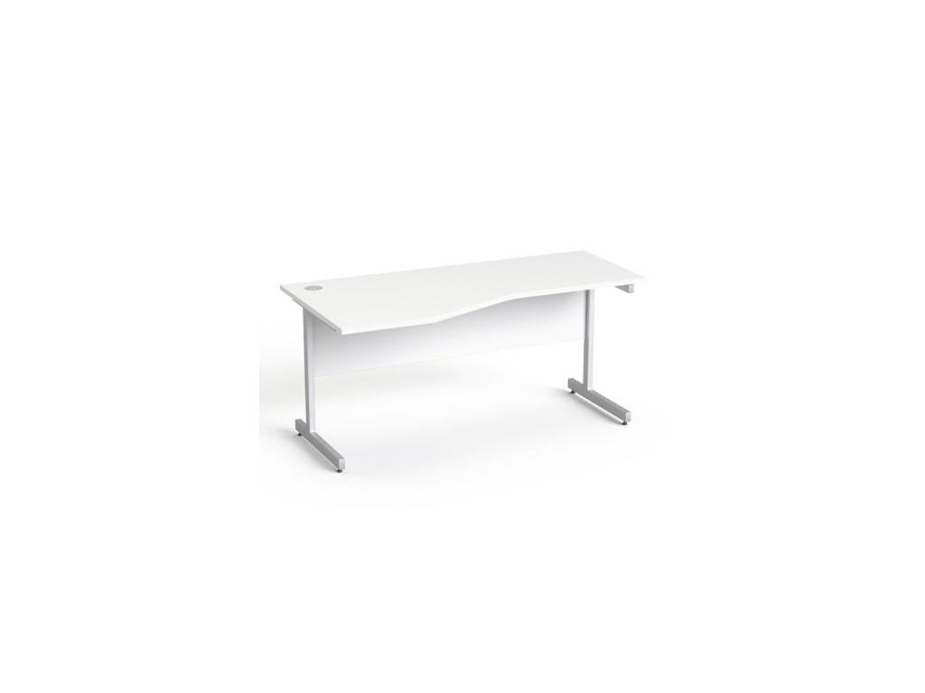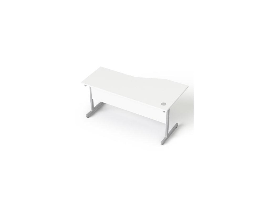 Písací stôl, oblúkový, ľavý, so sivými kovovými nohami, 160 × 80 cm, MAYAH „Freedom SV-30“, biela