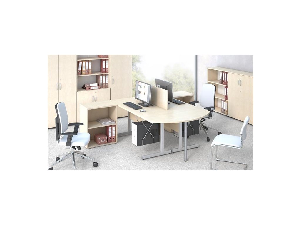 rozmer stolovej dosky: 140x70cm výška: 73,5cm hrúbka dosky stola: 25mm hrúbka krycích prvkov: 18mm hranový uzáver: 2mm so sivými kovovými nohami, pripevnených na plechu dekor: javorDodatočné parametre