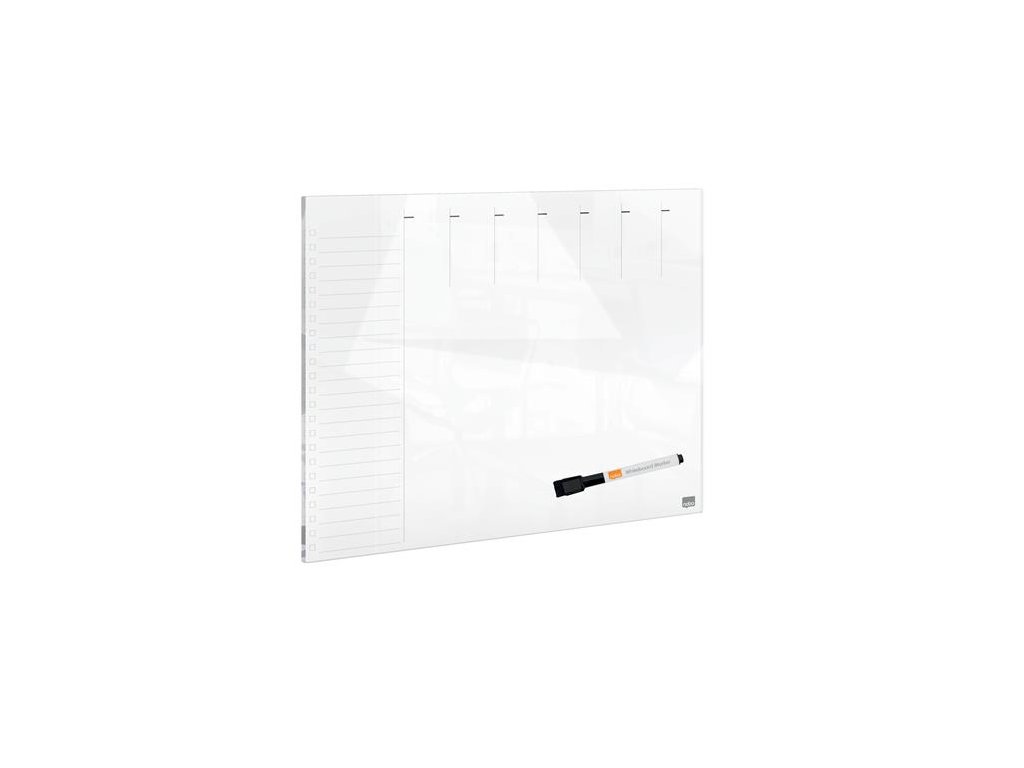 Plánovacia tabuľa, sklenená, magnetický povrch, týždenná, 43x56 cm, NOBO "Home", biela