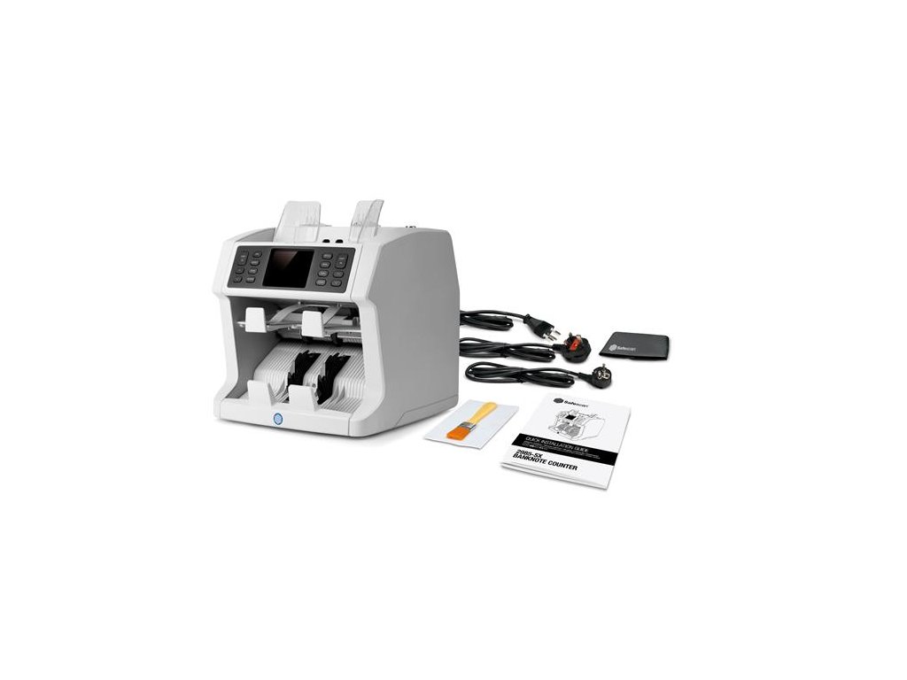 Počítačka bankoviek 2985-SX je profesionálne zariadenie na každodennú prácu s hotovosťou. - najnovšia technológia na počítanie veľkého množstva bankoviek - export údajov do špeciálneho systému - veľký, priehľadný displej - počítanie, kontrola a triedenie bankoviek nastaviteľná rýchlosť počítania - upozornenie na zmenu aktuálnej bezpečnostnej funkcie - 8 bezpečnostných funkcií na kontrolu bankoviek - rýchly a efektívny proces - Technológia CIS (skenovanie sériových čísel) - výber a otáčanie bankoviek - počítaná kapacita bankovky: 500 kusov - zberná kapacita: 220 ks - Predvolené meny: CZK, EUR, GBP, USD, CHF, PLN, BGN, HUF, HRK, RON, TRY, SEK, NOK, DKK - rýchlosť počítania: 800, 1 000 alebo 1 200 ks / min počet kontrolovaných položiek: - rozmery: 27,1 × 30 × 29,3 cm - hmotnosť: 9,2 kg - záruka: bez registrácie na výrobok platí 24-mesačná záruka, predĺženú záruku (36 mesiacov) je možné získať registráciou na webovej stránke výrobcu do 30 dní od nákupu.Dodatočné parametre