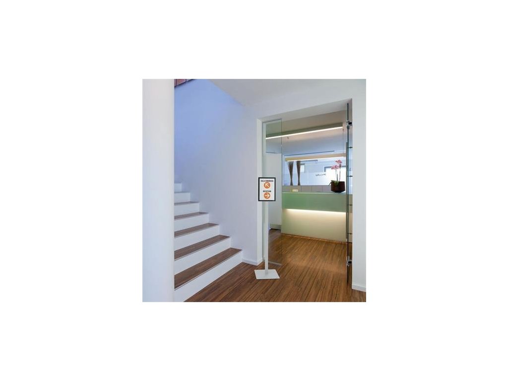 INFO STAND BASIC podlahový stojan je čitateľný z oboch strán, čo ho robí ideálnym na prezentáciu informácií aj ako orientačný a navigačný systém.