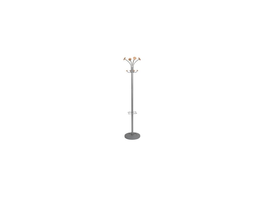 Podlahový vešiak, kovová konštrukcia, drevené doplnky, ALBA "Viena", strieborná