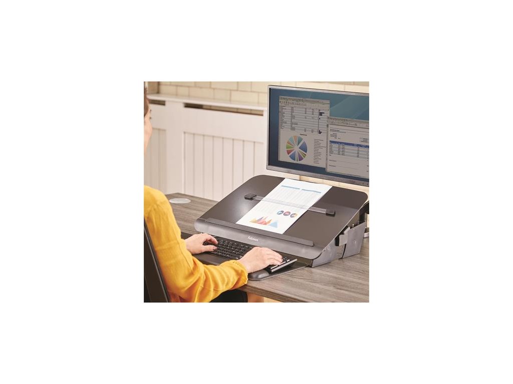 Pomáha pri správnom držaní tela 5 možností nastavenia výšky Plošina sa ľahko posúva dopredu a zaberá menej miesta na stole Má skrytý zásobník Obsahuje magnetický úchyt Štýlový kovový dizajn Rozmery produktu: 115,9 x 562 x 349,3 mm Hmotnosť: 6,35 kgDodatočné parametre